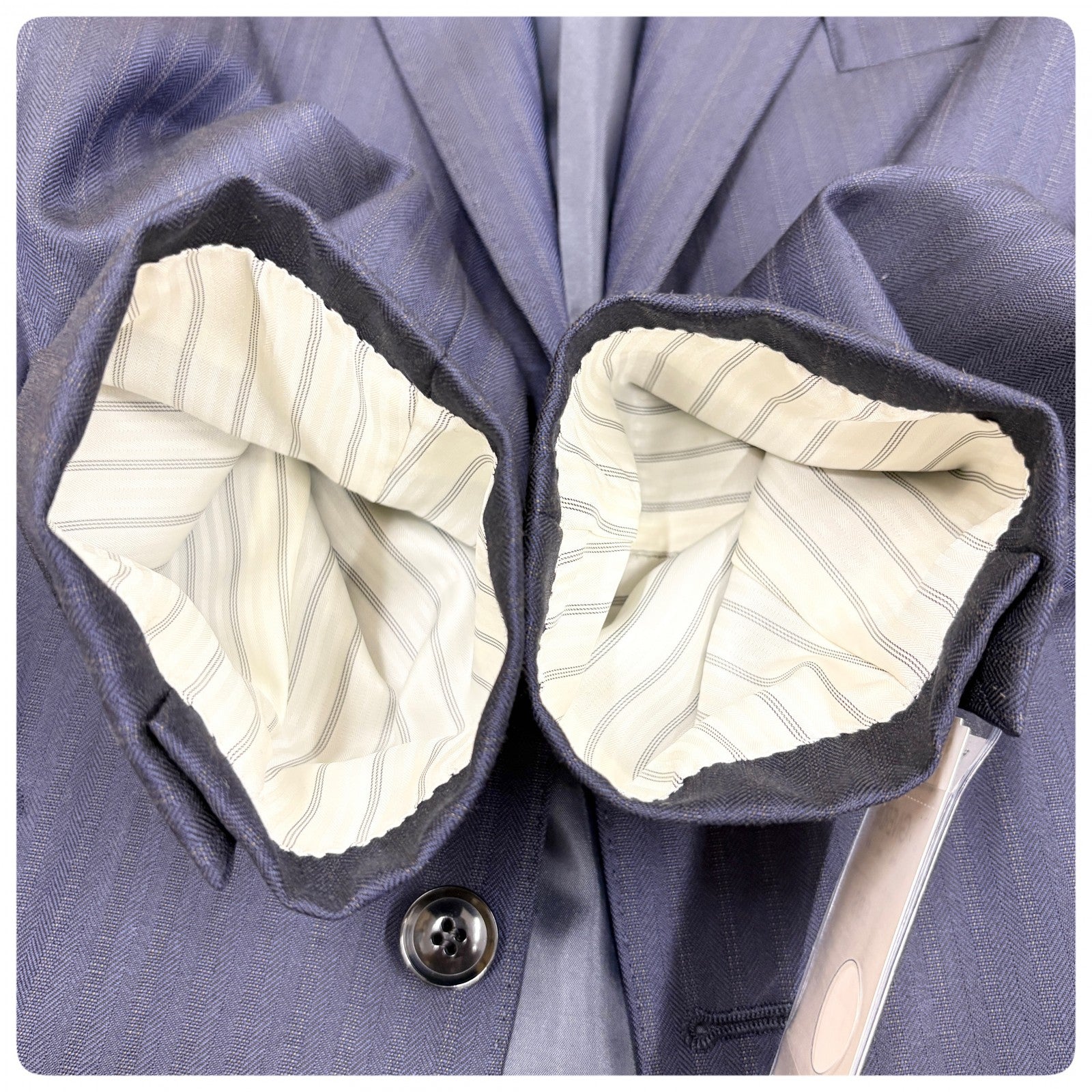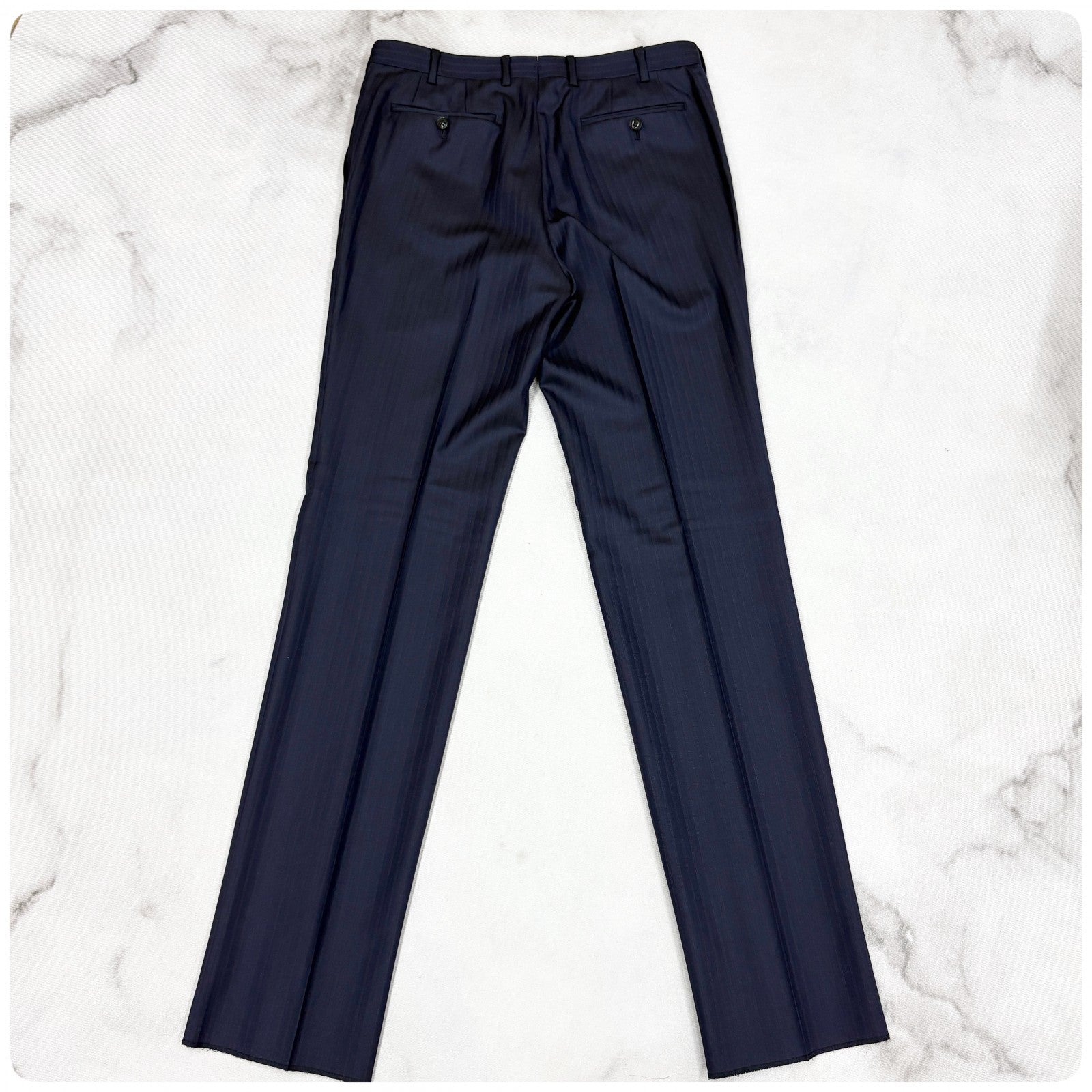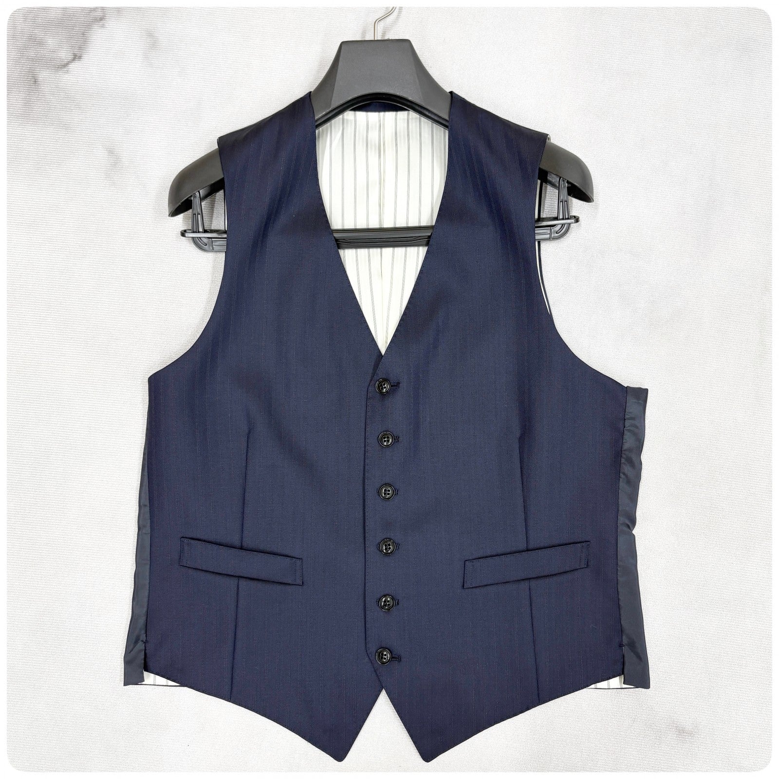 商品説明 | Thank you for visiting my page. This item is brand new and 100% authentic. It’s a high-quality men’s suit, perfect for business or formal occasions. Feel free to browse and make a purchase anytime. ====== ■ブランド:GIVERDYE (ジバルディ) ■定価:83000円 (税抜) ■カラー:ネイビー ■タイプ:ストライプ/2釦 ■サイズ:BBS ・対応身長:155~165cm ・胸囲:92~100cm ■平置き計測 肩幅:cm 身幅:cm 着丈:cm 裾丈:cm S相当(小柄〜標準体型のがっしりさん向け) ■素材:毛 98% ポリエステル2% ====== ネイビーにほんのりストライプ柄の 大変上品な印象の3ピーススーツです。 新品未使用品で、裾はご身長に合わせて 裾上げの調整をお願い致します。 1箇所、背面裾に 小さな縫い付け後のダメージがあります。 遠目ではあまり目立ちませんが、 気になる方はご購入をお控え下さいませ。 メーカー様より新品未使用のまま、 入荷をしております為、中古品ではございません。 スーツを愛し、作り手が拘り抜いた 上質な逸品をお届け致します。 Meroneでは、正規品・真贋鑑定済みのお品のみを取り扱っており、 【Re:seller】として、本物以外のお品は一切お取り扱い致しません。 #紳士服 #スーツ #セットアップ #ビジネス #ジェントルマン #3ピース #ジャケット #ベスト #スラックス |