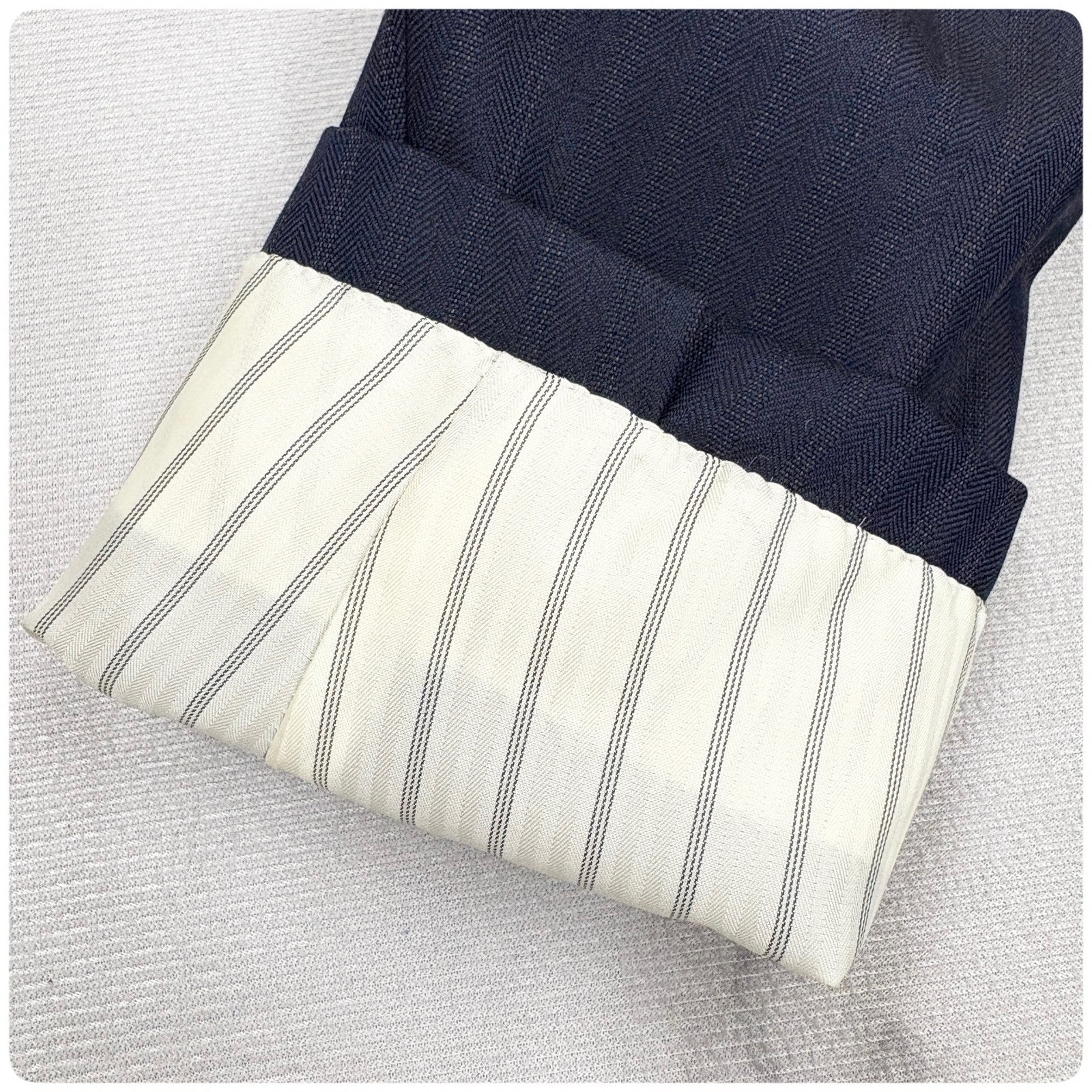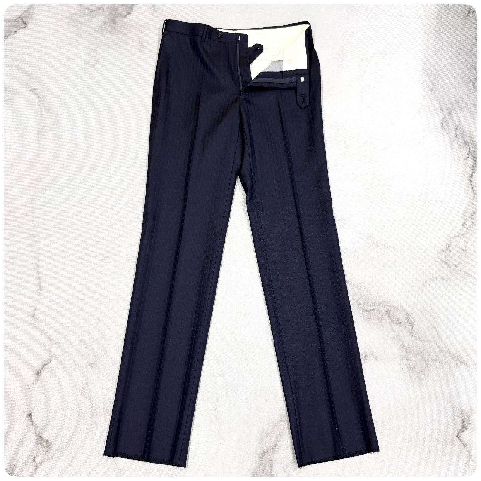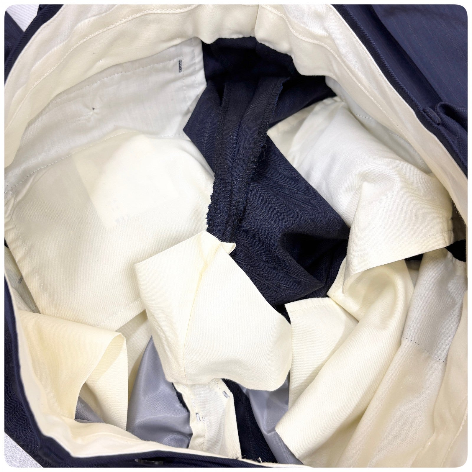 商品説明 | Thank you for visiting my page. This item is brand new and 100% authentic. It’s a high-quality men’s suit, perfect for business or formal occasions. Feel free to browse and make a purchase anytime. ====== ■ブランド:GIVERDYE (ジバルディ) ■定価:83000円 (税抜) ■カラー:ネイビー ■タイプ:ストライプ/2釦 ■サイズ:BBS ・対応身長:155~165cm ・胸囲:92~100cm ■平置き計測 肩幅:cm 身幅:cm 着丈:cm 裾丈:cm S相当(小柄〜標準体型のがっしりさん向け) ■素材:毛 98% ポリエステル2% ====== ネイビーにほんのりストライプ柄の 大変上品な印象の3ピーススーツです。 新品未使用品で、裾はご身長に合わせて 裾上げの調整をお願い致します。 1箇所、背面裾に 小さな縫い付け後のダメージがあります。 遠目ではあまり目立ちませんが、 気になる方はご購入をお控え下さいませ。 メーカー様より新品未使用のまま、 入荷をしております為、中古品ではございません。 スーツを愛し、作り手が拘り抜いた 上質な逸品をお届け致します。 Meroneでは、正規品・真贋鑑定済みのお品のみを取り扱っており、 【Re:seller】として、本物以外のお品は一切お取り扱い致しません。 #紳士服 #スーツ #セットアップ #ビジネス #ジェントルマン #3ピース #ジャケット #ベスト #スラックス |