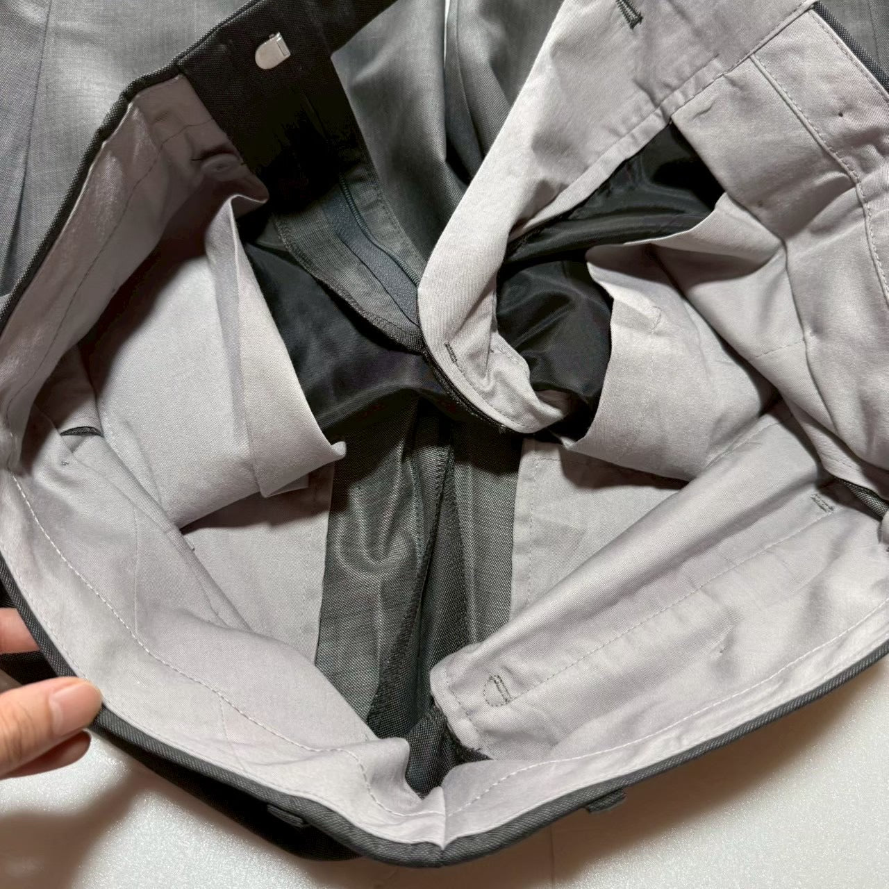 商品説明 | 平置き採寸:シャケット:肩幅43cm/身幅50cm/着丈72cm/裾丈58cm/ベントの長さ23cm パンツ:ウエスト37.5×2cm /股下86.5cn/裾幅21cm ズボン2枚/春夏向き |