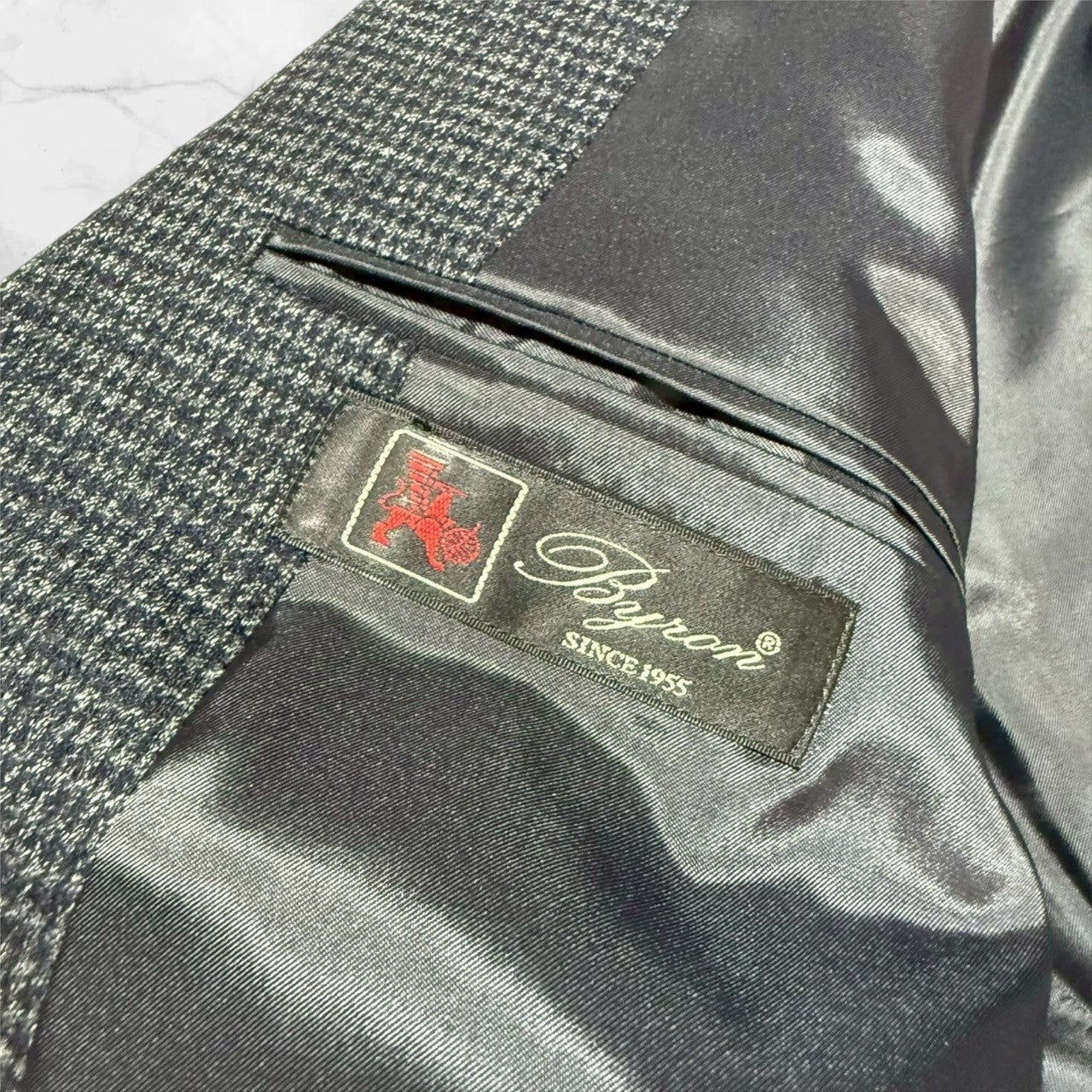 新品 BYRON バイロンビジネ ススーツ Sサイズ ブルーグレー 千鳥格子